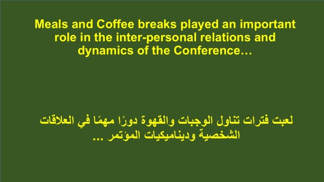 Meals and Coffee Breaks Played an Important Role in the Inter-Personal Relations and Dynamics of the Conference