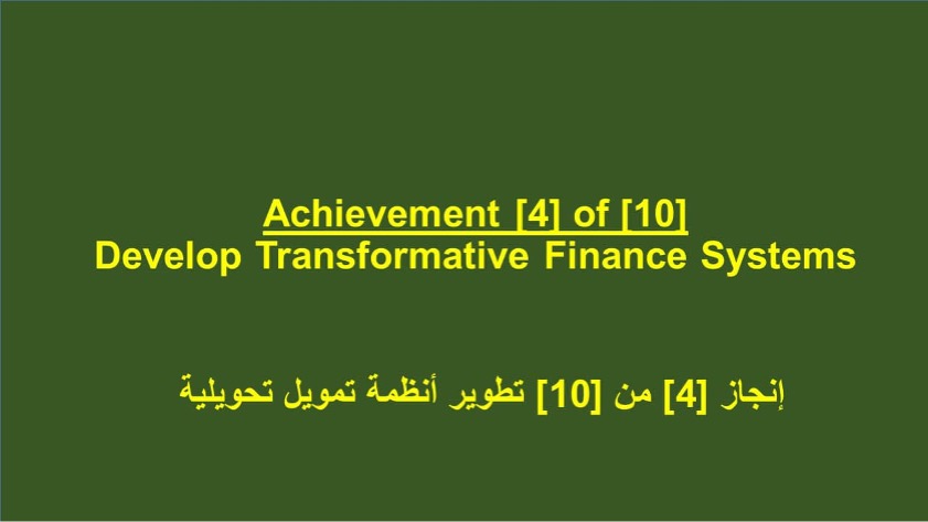 Achievement 4 of 10 Develop Transformative Finance Systems 20-1-2023