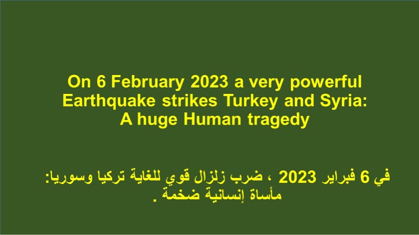 On 6 February 2023 a very Powerful Earthquake Strikes Turkey and Syria A huge Human Tragedy